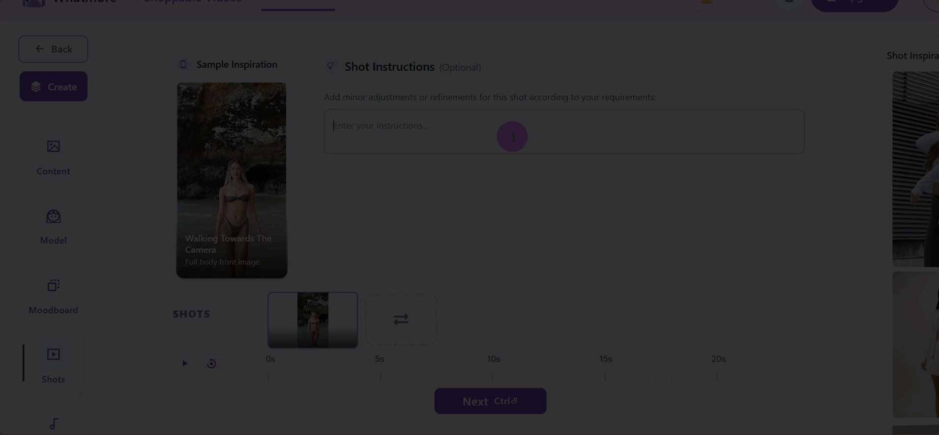 In Shot section, type your detailed instructions.The Shot Instructions field supports many types of instructions, including: