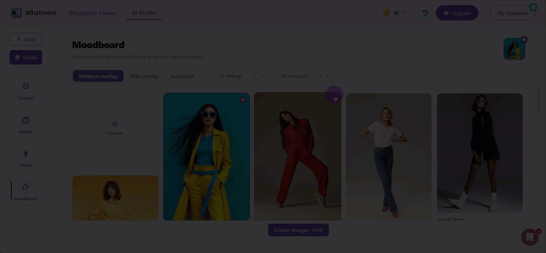 - Select up to five poses to generate variations. You can choose a mix of poses that highlight different angles and movements of your product, giving customers a complete view.
